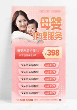 粉色弥散风母婴护理服务亲子育儿宣传海报