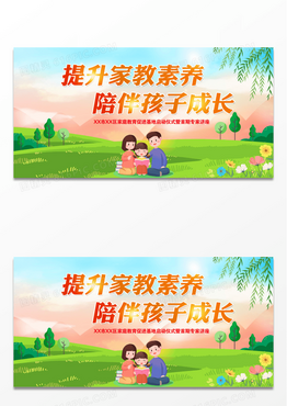 卡通手绘家庭教育亲子互动陪孩子看书素材