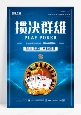 蓝色创意背景掼蛋棋牌游戏海报设计