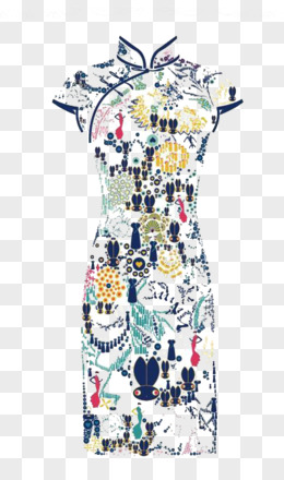 国潮旗袍女荷花鱼手绘卡通时尚素材