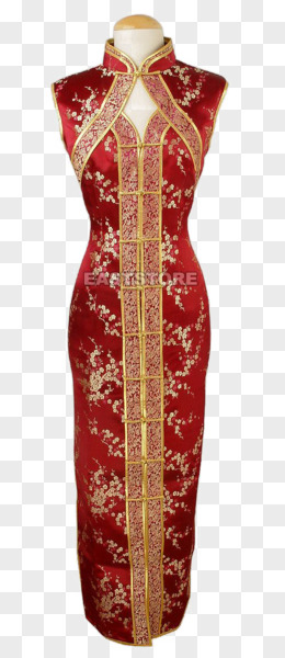 卡通风开学季一个红色旗袍小女孩在读书免抠元素