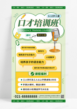 绿色渐变口才培训班气泡漫谈风招生手机海报