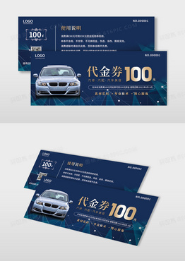 蓝色质感汽修汽配汽车美容优惠券汽车代金券
