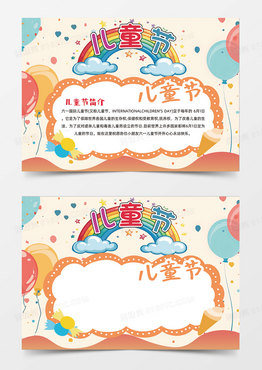 儿童节欢乐彩色气球冰淇凌糖果开心手绘卡通手抄报