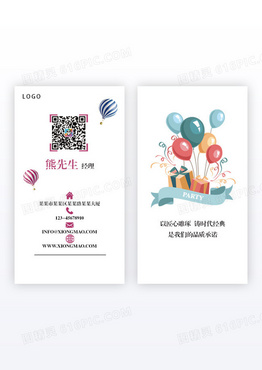白色简约风艺术公司派对竖版名片公司名片派对艺术名片