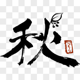 一年四季之秋与花合成毛笔字设计