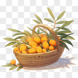 手绘插画秋季水果女孩摘枇杷微景观免抠素材