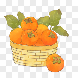 手绘唯美插画风女孩坐在柿子树上免抠元素