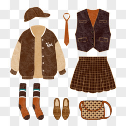 一组棕色学院风秋装穿搭合集肌理插画素材