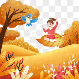手绘插画秋季水果吃柑橘微景观免抠素材