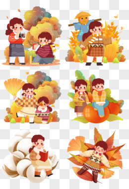 一组创意插画秋季立秋秋天节气可爱女生合集元素
