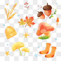 手绘插画秋天贴纸免抠元素