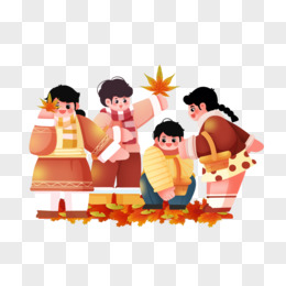 创意插画小伙伴朋友同学儿童捡落叶红色素材