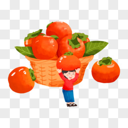 卡通手绘秋天小女孩摘柿子免抠插画元素
