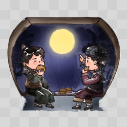 手绘水墨古人赏月插画元素