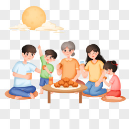 手绘插画一家人团圆赏月免抠素材