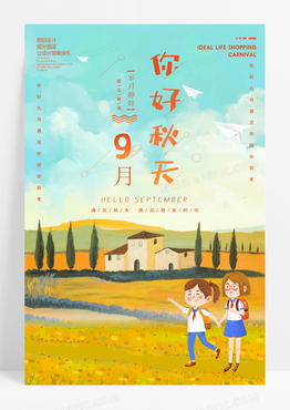 手绘国潮立秋山水仙鹤菊花枫叶元素
