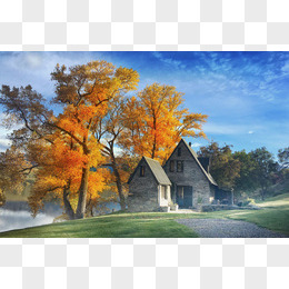 手绘唯美插画风女孩坐在柿子树上免抠元素