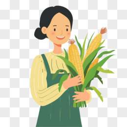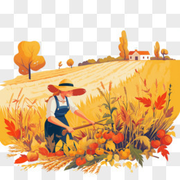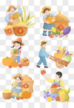 一组创意插画农民秋季丰收收获粮食人物合集元素