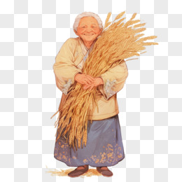 秋天丰收喜悦的农民抱着麦穗人物形象