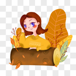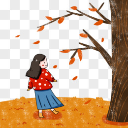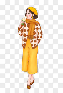 一组手绘插画风唯美女性四季穿搭全身合集之秋天穿搭素材