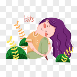 手绘卡通创意插画女孩们坐在棉花上免抠素材
