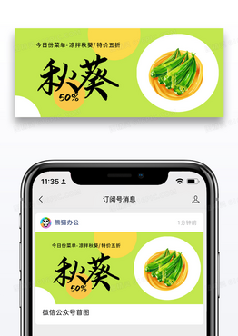 简约美食夏季小凉菜秋葵美食促销公众号封面配图图片