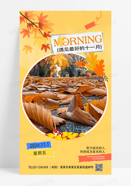 节气海报秋天海报你好十一月秋日风格元素