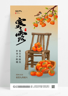 寒露中国风金秋秋收丰收插画手绘果实水果海报