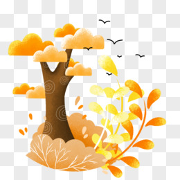 手绘风吹梧桐树的落叶免抠漂浮素材