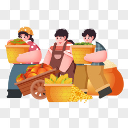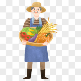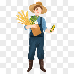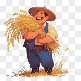 卡通风秋天一个农民抱着成熟的麦子免抠元素
