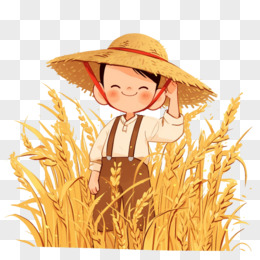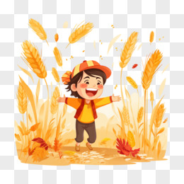卡通风秋天一个小男孩站在成熟的麦田里免抠元素