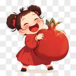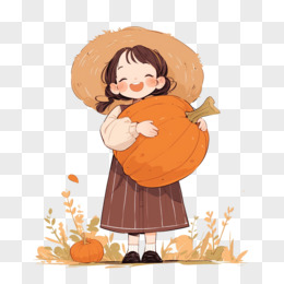 卡通风秋天一个小女孩抱着成熟的大南瓜免抠元素