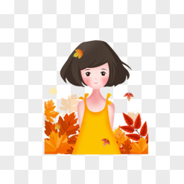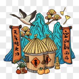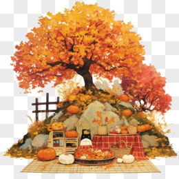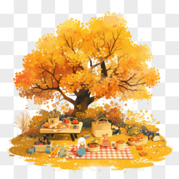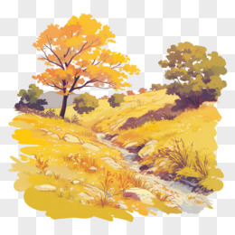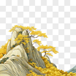 国潮插画秋天山顶的黄色树木风景免抠元素