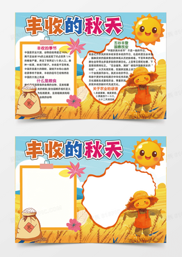 卡通插画橙色丰收的秋天稻草人可爱手抄报