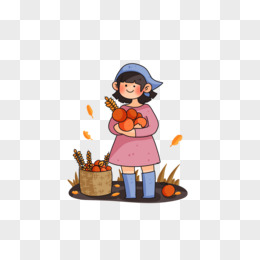 秋天农明抱着一筐麦子免抠素材