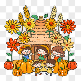 手绘粮食丰收可爱小孩子场景元素