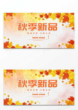 黄色秋天落叶枫叶唯美秋季新品感恩钜惠促销展板