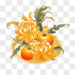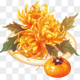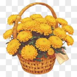 卡通风秋天小女孩抱着一竹篮菊花免抠元素