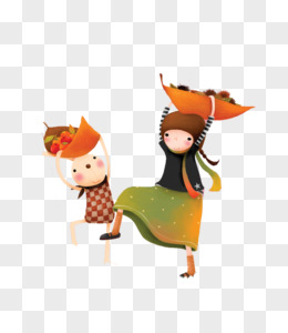 手绘水彩风儿童坐在叶子上与小鸟互动元素