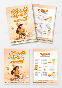 秋天第一杯奶茶手绘红豆奶茶菜单宣传单菜单奶茶宣传单