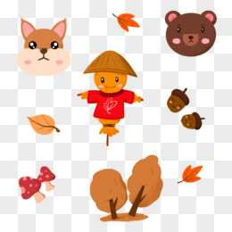 一组秋季可爱拟人风创意手账贴纸装饰元素
