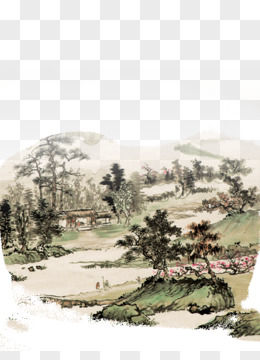 水墨画山村七夕情人节海报背景