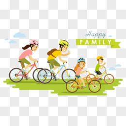 手绘卡通爸爸帮孩子学骑自行车免抠素材