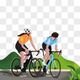 卡通手绘情侣骑单车骑行郊外游玩元素