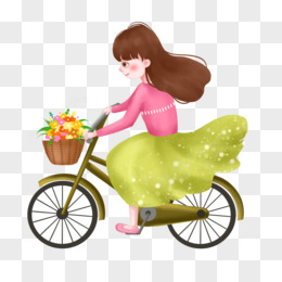 卡通女生骑单车免抠元素