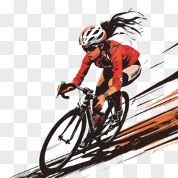 插画一个女孩在自行车比赛中免抠元素