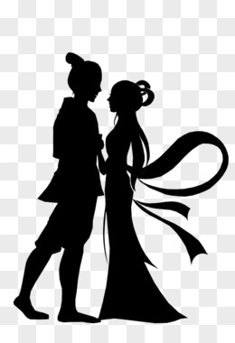 紫色浪漫牛郎织女相拥剪影矢量装饰元素