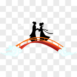 卡通矢量扁平风免抠牛郎织女鹊桥相会素材
