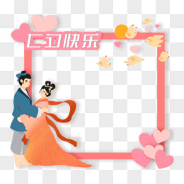 一组卡通扁平矢量风牛郎织女相爱手举牌套图之七夕快乐素材